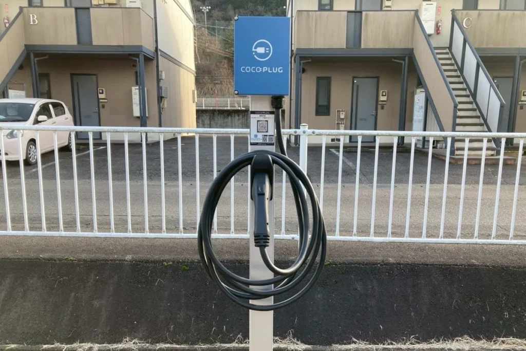凰建設駐車場に、電気自動車(EV)充電器を4台設置しております。お打ち合わせ等でご来訪の方はもちろん、近くにお越しの際は是非ご利用くださいませ。