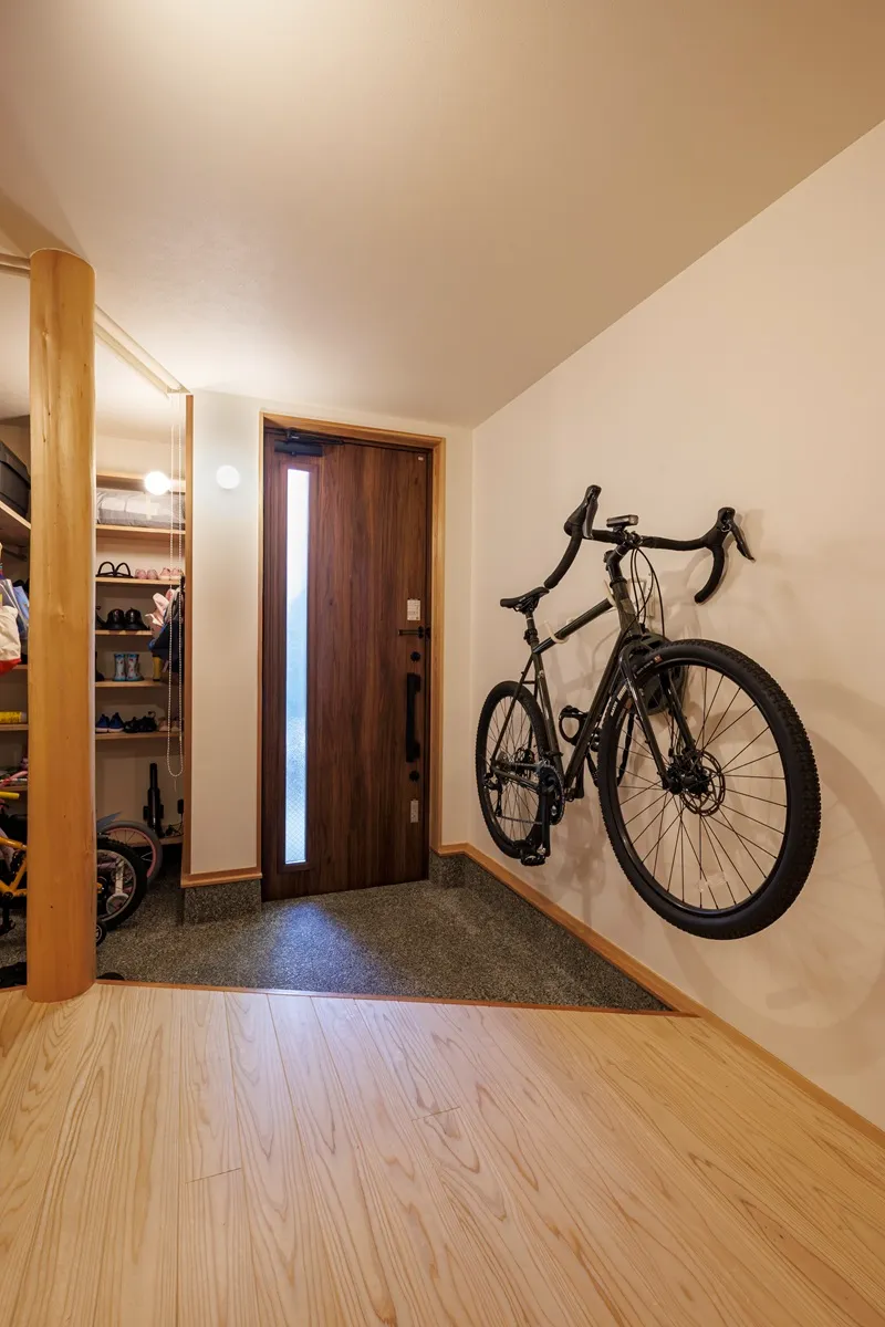 日射取得がなくても暖かく快適な家、そして和モダンなデザインですっきり暮らせる家。岐阜市の中心市街地での建て替え計画で様々な制限がありましたが、その分、建物性能、素材、造作家具などにこだわりを持ち、上質な空間で落ち着く住まいです。